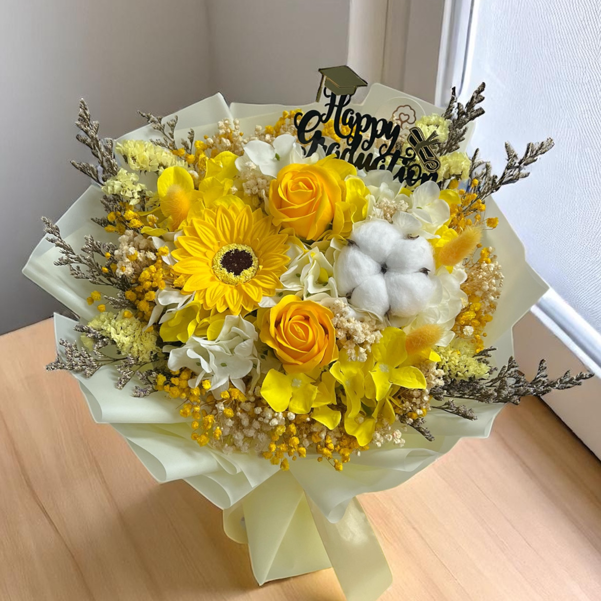 熱門花束丨黃玫瑰丨黃色棉花丨百搭款式 丨畢業花束丨榮休花束丨生日花束丨洗禮花束丨畢業棉花花束丨畢業花束丨黃色花束