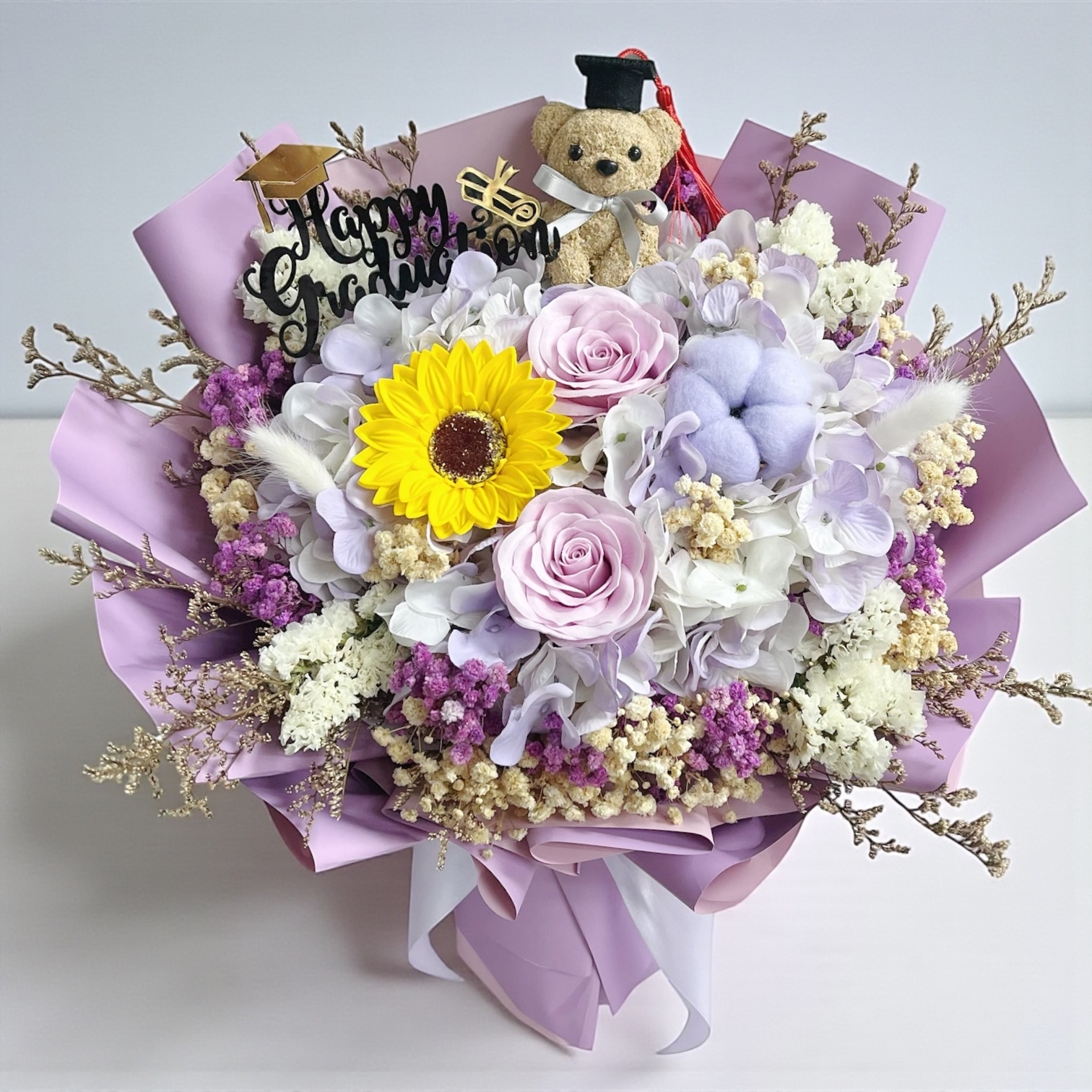 👉🏻乾👈🏻 心意花束丨棉花花束丨糖果色花束丨3支主花丨畢業花束丨生日花束丨紫色花束丨小學畢業花束丨中學畢業花束