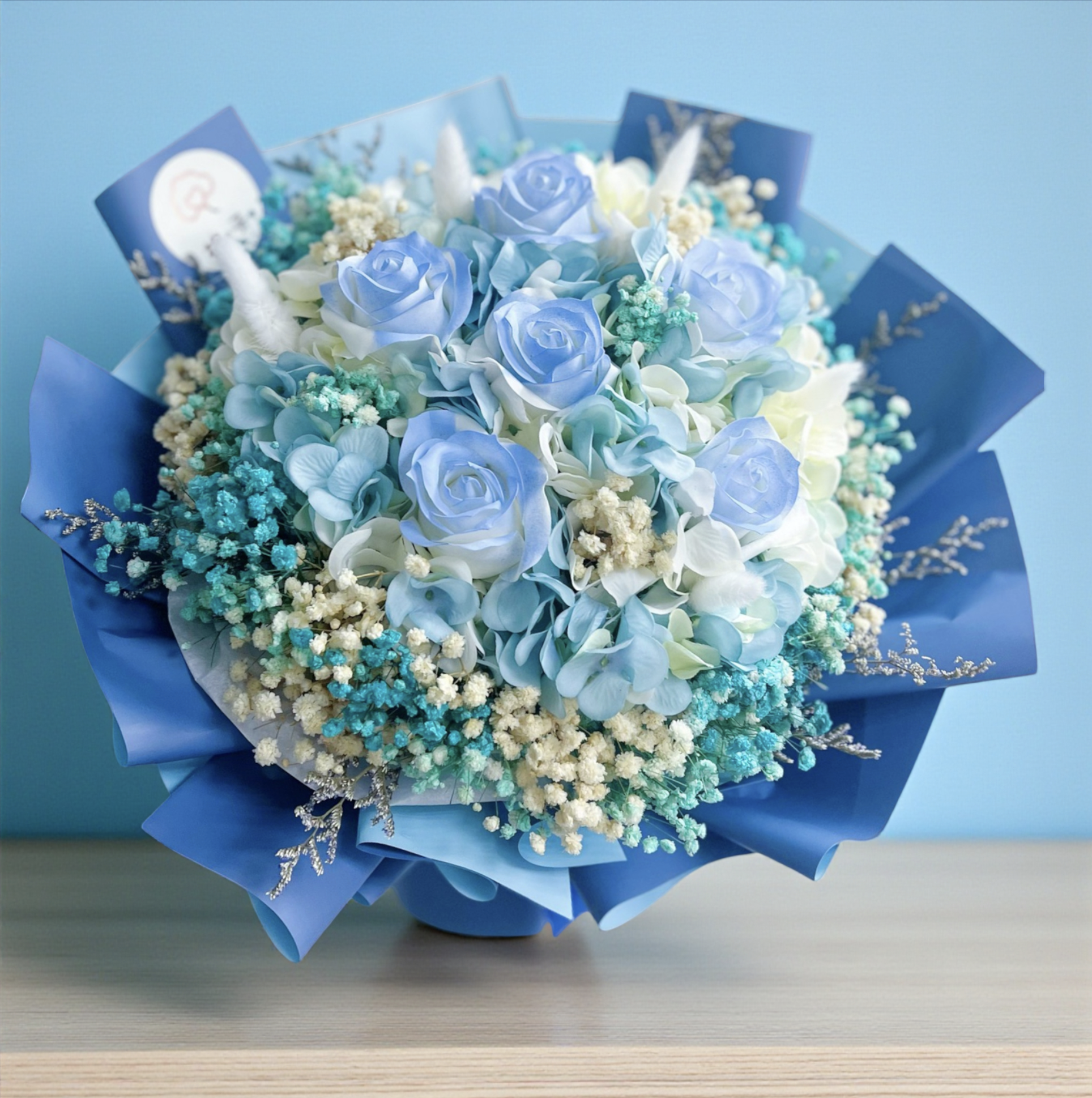 👉🏻乾👈🏻 棉子經典花束丨碎冰藍香皂玫瑰花花束丨6支主花丨藍色丨 經典(中花束)丨碎冰藍玫瑰花束丨生日花束丨情人節花束
