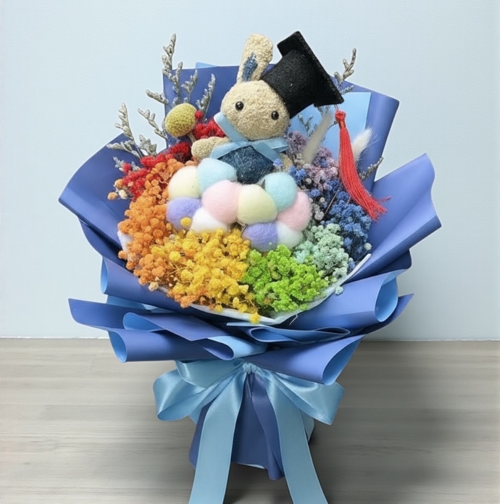 👉🏻乾👈🏻 兔兔花束丨小朋友花束丨畢業花束丨棉花花束丨彩虹色花束(細型版)