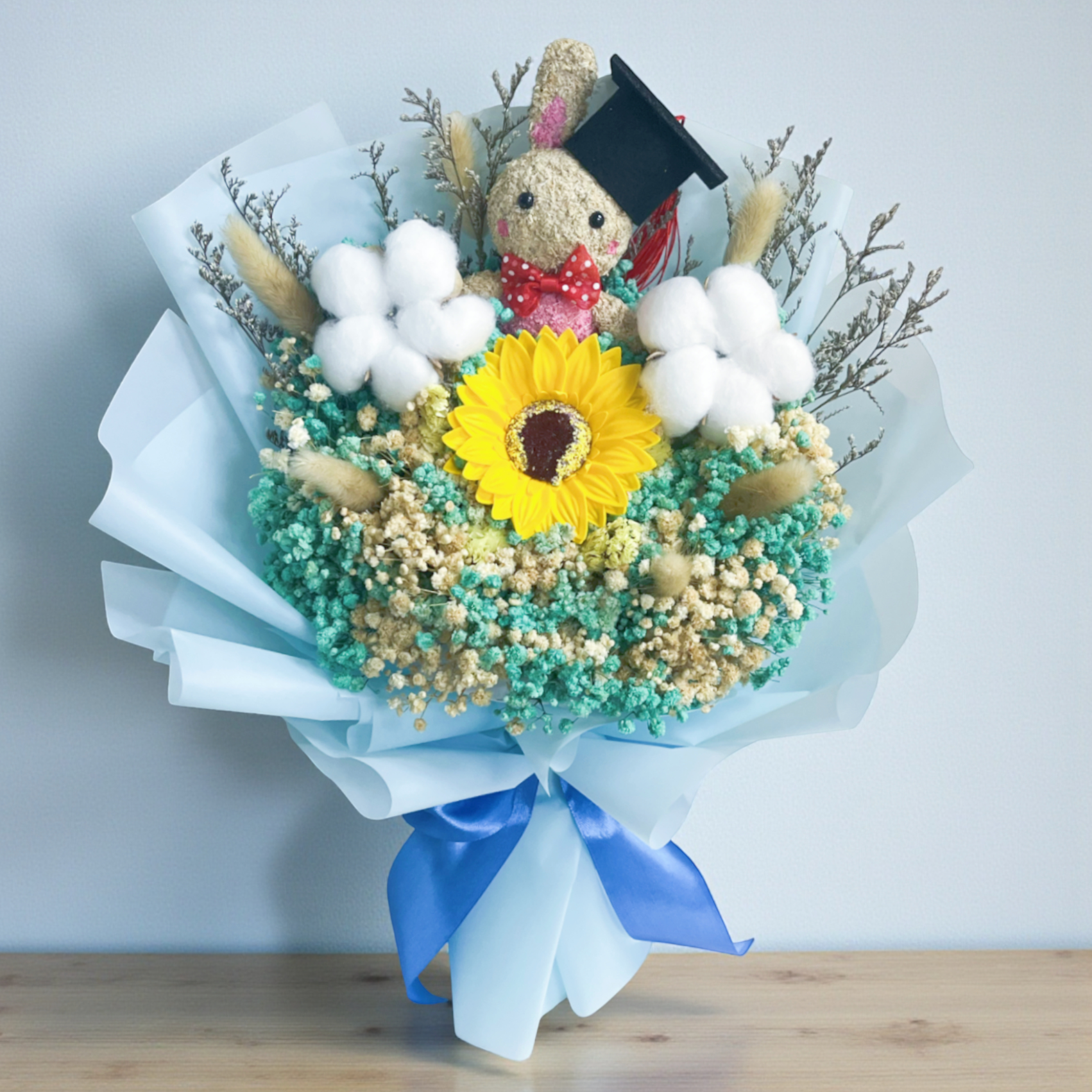 👉🏻乾👈🏻 經典兔兔丨棉花花束丨香皂太陽花花束丨淺藍色花束丨3支主花丨畢業花束丨生日花束丨棉花畢業花束丨棉花生日花束