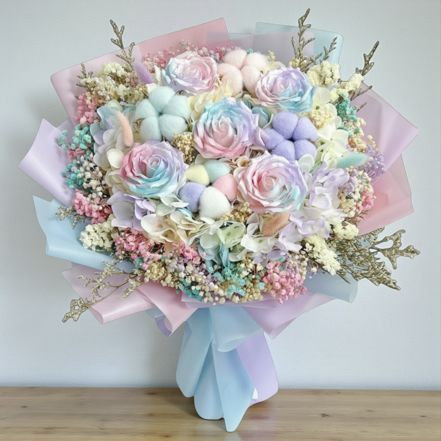 糖果色夢幻花束 - 甜蜜如糖的愛之禮 產品特色 🍭 糖果色系統一設計 這束花以溫柔的糖果色調為主題,從粉紅到淺藍的層次變化,彷彿將整個童年的甜蜜與夢幻融入其中,營造出獨特的視覺享受。 🌸 精緻花材組合 糖果色玫瑰:象徵甜蜜與溫柔 糖果色繡球花:豐富層次與質感 精緻乾燥花:點綴自然風情 🎀 溫柔包裝設計 糖果色包裝紙,質感柔軟 同色系緞帶綑綁 簡約而不失質感的包裝風格 糖果色花束的象徵意義 🍭 甜蜜與溫柔 糖果色象徵著甜蜜、溫柔與快樂,是表達愛意的完美顏色。 🍭 童年與夢幻 糖果色也象徵著童年與夢幻,適合送給喜歡可愛風格的人。 🍭 希望與夢想 糖果色代表希望與夢想,能為人帶來積極正面的能量,鼓勵人們追逐夢想。 適合場合 浪漫約會 生日祝福 感謝致意 慰問與鼓勵 立即擁有這束充滿甜蜜與溫柔的糖果色花束,讓愛意如糖果般甜蜜而真摯!