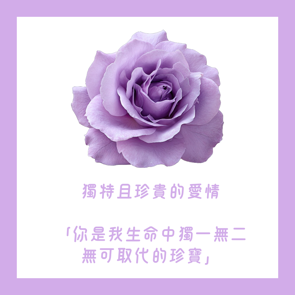 紫玫瑰的花語有著安靜、守護愛情的意涵,也代表著將守護著對方一生一世