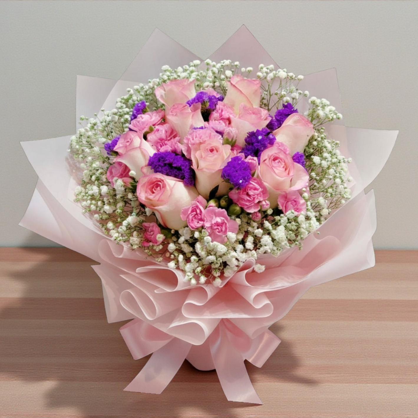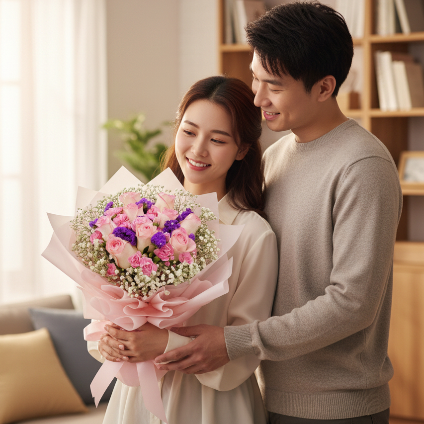 🙌鮮花花束 色彩柔和:淡草莓奶油玫瑰和康乃馨搭配紫色毋忘我,色彩柔和且富有浪漫氣息 小巧精緻: Baby’s Breath(滿天星)點綴其中,增加了花束的層次感和精緻感 紫色毋忘我:象徵著「真摯的愛」、「永恆的記憶」和「忠貞」 粉色康乃馨:通常代表「感謝」、「愛與尊敬」,對伴侶的感激 白色满天星:象徵「真摯、純潔、甘當配角的爱」,能襯托主花,讓整體更顯溫柔浪漫 合適場合: 情人節: 浪漫氛圍:淡草莓奶油玫瑰象徵著愛情和浪漫,非常適合表達愛意。 甜蜜感覺:整體色調柔和,給人一種溫馨、甜蜜的感覺,符合情人節的主題 母親節: 感恩之情:粉紅色康乃馨是母親節的代表花卉之一,象徵著對母親的感激和敬愛 溫暖祝福:淡雅的色彩和精緻的包裝,傳遞出對母親的關心和祝福 畢業: 慶祝成就:雖然畢業更多與祝賀和未來相關聯,但這款花束也可以用來慶祝學業上的成就,尤其是對於女性畢業生來說,它代表着美麗、成長和新的開始 總的來說,這款花束因其柔和的色彩和精緻的設計,適合多種慶祝和表達情感的場合 花材可能因季節性而作出變動,不影響主花為準 自選玫瑰支數 6支玫瑰 寓意:順心如意、永結同心、順利、一切順心 表達了對未來的美好期許和對他人的祝福。 9支玫瑰 寓意:長相守、永久的擁有、堅定的愛 9支玫瑰的花語代表著長久和堅定,象徵兩人之間的愛情堅定不移 也象徵著對同學們未來人生的美好祝愿,希望他們的友誼長存,事業長青,幸福長久 11支玫瑰 寓意:一心一意、唯一 11支玫瑰的花語表達了對愛情的專注和堅定,象徵「我只在乎你一人」 無論是表達友誼、感謝還是對未來的祝福,11支玫瑰都是一份充滿心意且獨特的禮物 18支玫瑰 相守一生、無盡的愛意、真誠與坦白 18支玫瑰的花語象徵著對愛情及友誼的深刻承諾,表達了願與對方永遠相伴、祝福意味