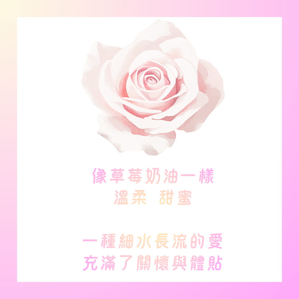 這是最核心的花語。它不像紅玫瑰那樣熱烈奔放,也不像白玫瑰那樣純粹高潔,而是像草莓奶油一樣,溫柔、甜膩、不具攻擊性。