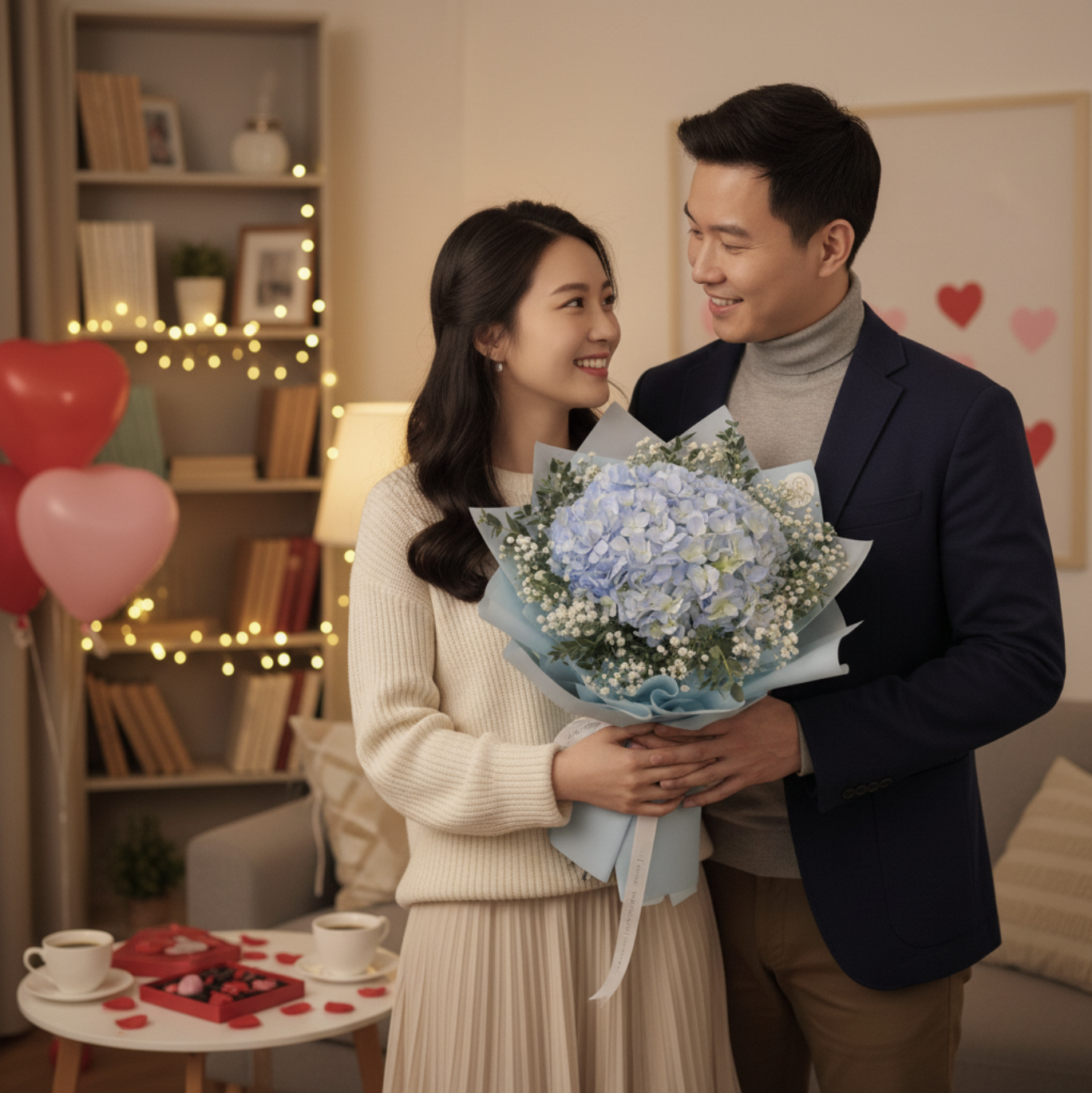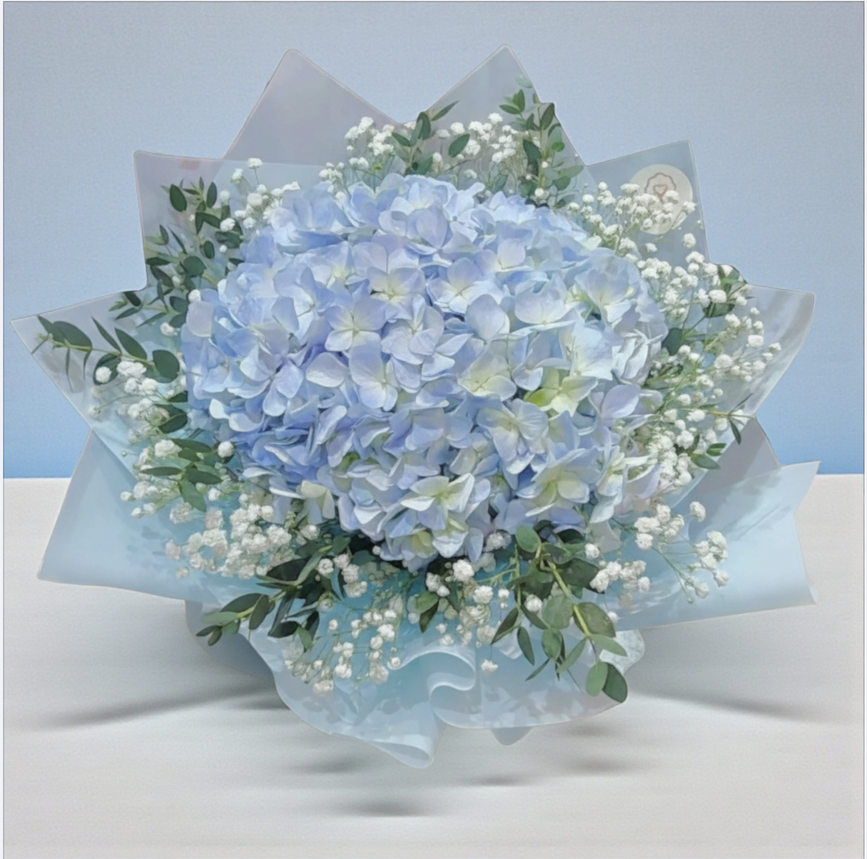 這束淺藍繡球花束,以柔美淡藍色繡球為主角,搭配清新尤加利葉與細緻滿天星,整體呈現溫柔雅緻的視覺感受。淺藍色系象徵著純潔、平靜與希望,尤加利葉的加入增添自然質感,滿天星則為花束點綴出夢幻氛圍。 情人節: 淺藍色繡球象徵著純潔的愛情與永恆的承諾,尤加利葉代表著堅定不移的愛,滿天星則象徵著無盡的思念,是表達深情厚意的完美選擇 畢業禮: 淺藍色代表著知識與智慧,尤加利葉象徵著成長與堅韌,滿天星寓意著未來的無限可能,送給畢業生象徵著對他們未來的祝福與期望 母親節: 淺藍色繡球代表著母愛的溫柔與包容,尤加利葉象徵著母親的堅強與支持,滿天星則象徵著母愛的無私與廣大,是感謝母親辛勞的溫馨之選 生日花束: 淺藍色繡球代表著生日的喜悅與祝福,尤加利葉象徵著健康與長壽,滿天星則象徵著生日的夢幻與美好,是慶祝生日的理想花束 紀念日花束: 淺藍色繡球象徵著紀念日的特別與珍貴,尤加利葉代表著紀念日的堅定與持久,滿天星則象徵著紀念日的浪漫與溫馨,是紀念重要時刻的完美花束 這束花束不僅外觀美麗,更蘊含著豐富的象徵意義,適合各種特殊場合,傳遞出對收花人的深情祝福與美好願望