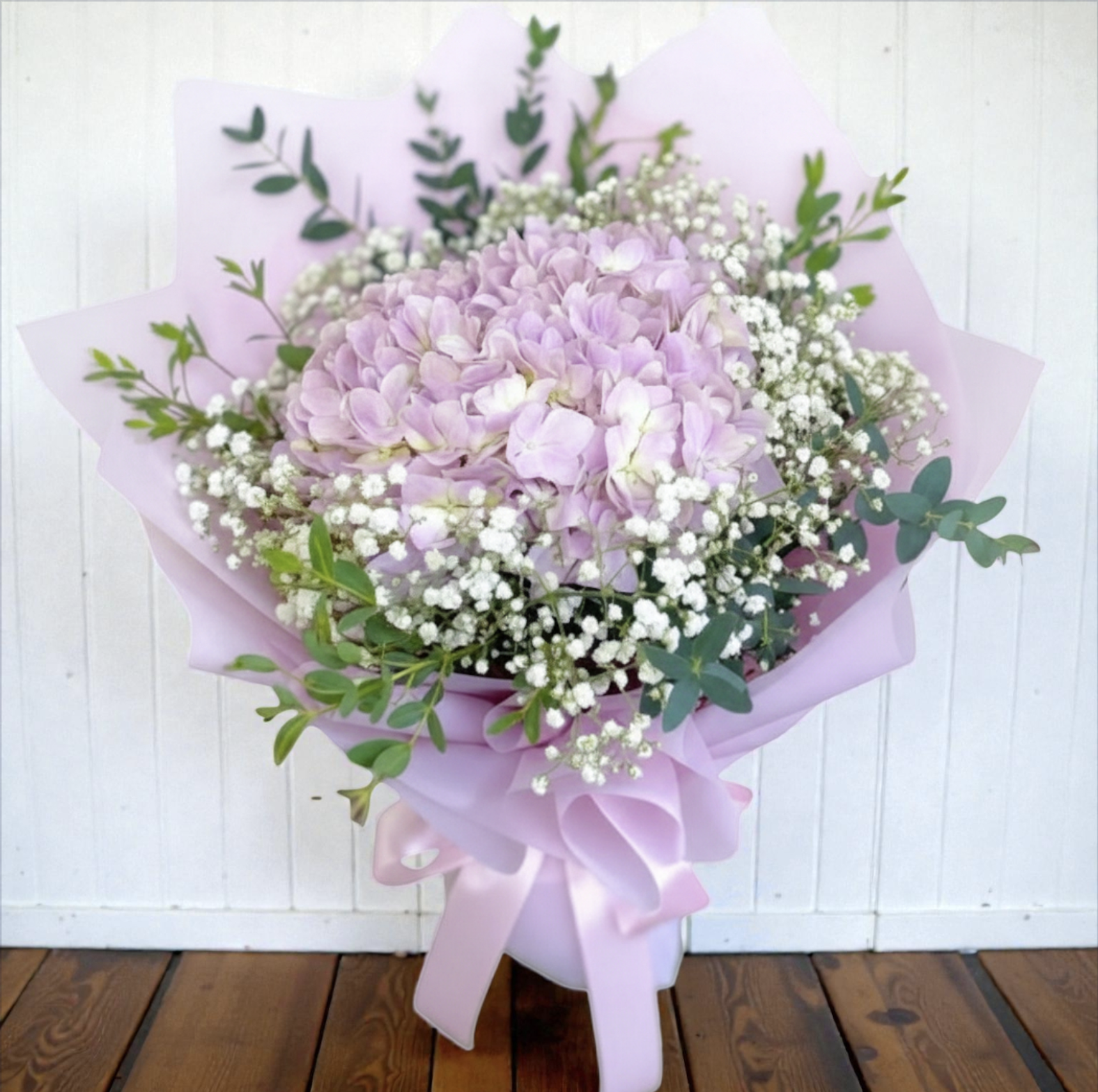 這束粉紅繡球花束,以溫柔淡紫的繡球為主花,搭配清新尤加利葉與細緻滿天星,整體呈現浪漫雅緻的視覺感受 粉紅繡球象徵著浪漫、夢幻與溫柔,尤加利葉的加入增添自然質感,滿天星則為花束點綴出夢幻氛圍。 適用場合: 情人節: 粉紅繡球象徵著浪漫的愛情與夢幻的約會,尤加利葉代表著堅定不移的愛,滿天星則象徵著無盡的思念,是表達深情厚意的完美選擇 畢業禮: 粉紅繡球代表著知識與智慧,尤加利葉象徵著成長與堅韌,滿天星寓意著未來的無限可能,送給畢業生象徵著對他們未來的祝福與期望 母親節: 粉紅繡球代表著母愛的溫柔與包容,尤加利葉象徵著母親的堅強與支持,滿天星則象徵著母愛的無私與廣大,是感謝母親辛勞的溫馨之選 生日花束: 粉紅繡球代表著生日的喜悅與祝福,尤加利葉象徵著健康與長壽,滿天星則象徵著生日的夢幻與美好,是慶祝生日的理想花束 紀念日花束: 粉紅繡球象徵著紀念日的特別與珍貴,尤加利葉代表著紀念日的堅定與持久,滿天星則象徵著紀念日的浪漫與溫馨,是紀念重要時刻的完美花束